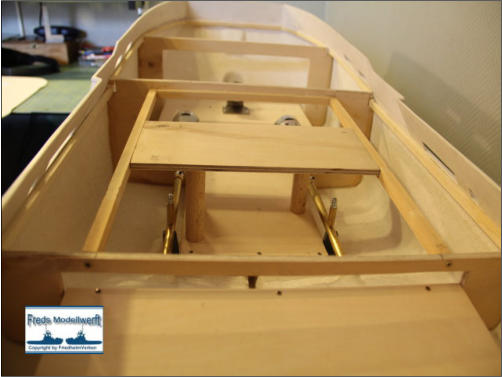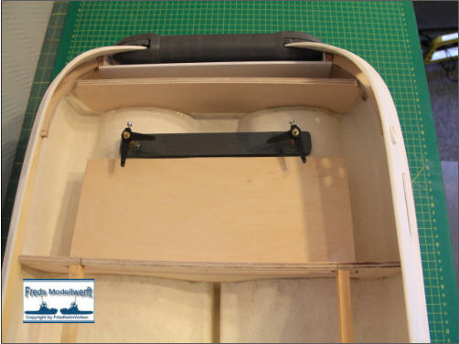 in den Rumpf zu verhindern, musste ich wie beim Original einen Art wasserdichten Tank hinter der Heckrolle anbringen. Des Weiteren wurde im Inneren