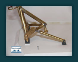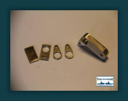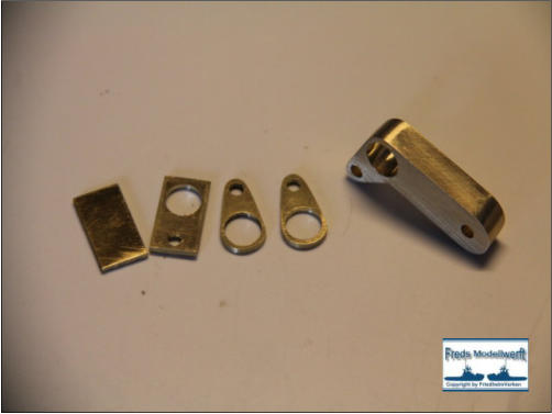 Für die Kippvorrichtung des Antennenmastes habe ich zwei Laschen und einen Umlenkhebel aus Messing ausgesägt und mit den nötigen Bohrungen