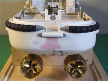 Größe: Länge über alles:   61.2 cm Breite über alles:    20,4 cm Tiefgang:                 10,2 cm Maßstab:                 1 : 50 Motor u. Antriebssysteme: Hauptmaschine:  2 x Graupner 720 BB Torque Gesamtleistung                 ? Antrieb  2 x Elekto Schottelverstellung Generatoren: 2 x FSD* Schottelantriebe                              (*=Fred Stern Drive) Performance Pfahlzug:       Bug ? Pfahlzug  Achtern ? Fahrt voraus:        ? Geschwindigkeit rückwärts ?