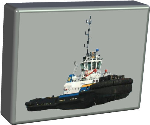 Das Original : IOM 9187253 Größe: Länge über alles: 30,60 m Breite über alles:  10.20 m Tiefgang:                5,10 m Motor u. Antriebssysteme: Hauptmaschine:  2 x Wärtsila 6L26 Gesamtleistung                 3660 kW Antrieb  2 x Aquamaster US 3001 ASD         (Azimuth Stern Drive) Generatoren: 2 x Catapillar 3304T Performance Pfahlzug:       Bug 65 t Pfahlzug  Achtern 58 t Fahrt voraus:                       13 Knoten Geschwindigkeit rückwärts: 12 Knoten