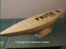 werden. Danach fertigte ich für das Innere die Cockpitschale und die Halterung des Segelverstellservos. Die Empfängerhalterung und das Batteriefach sind auch