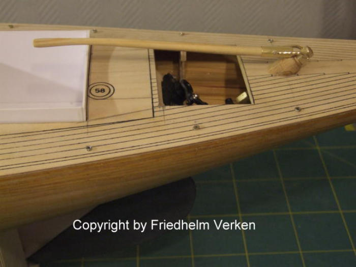 im Deck berücksichtigt werden. Hier musste eine zusätzliche Öffnung gemacht werden, um das spätere Warten und eingreifen der darunter liegenden Ruder und
