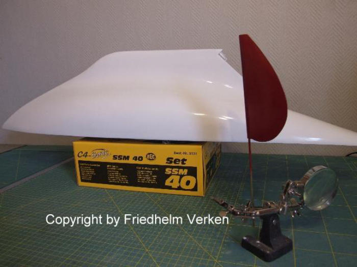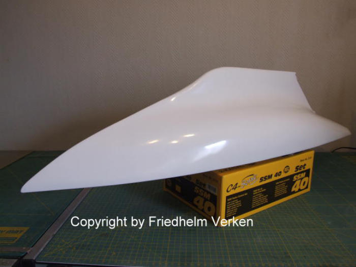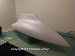 ganz kleinen Unebenheiten erkennen und ausbessern. Der Rumpf wurde zuerst ganz weiß glänzend lackiert. Für das Unterwasserschiff hatte ich die Farbe Karminrot