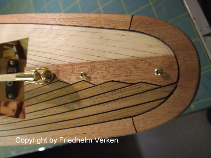 Für die Deckbeplankung wählte ich Mahagoni und Burma Teak. Diese Kombination kam den Originalen am nächsten. In Verbindung mit Messingbeschlägen ergab